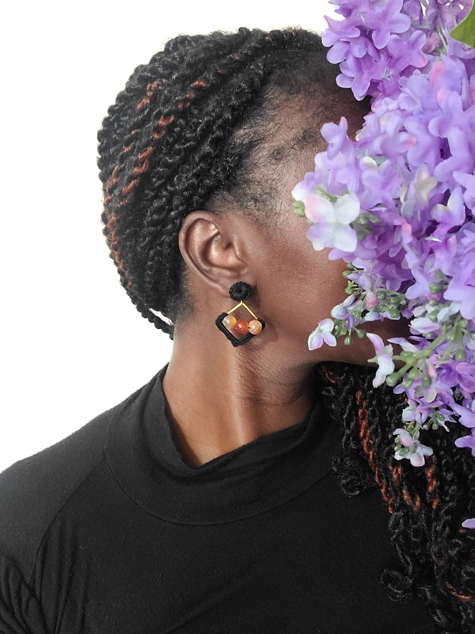 R.B. Carnelian is one of my favorite stones, so when I saw Sysaic Knotz had an earring set with this stone, I couldn’t resist! Beautiful combination of black, gold and red — can’t wait to show them off!