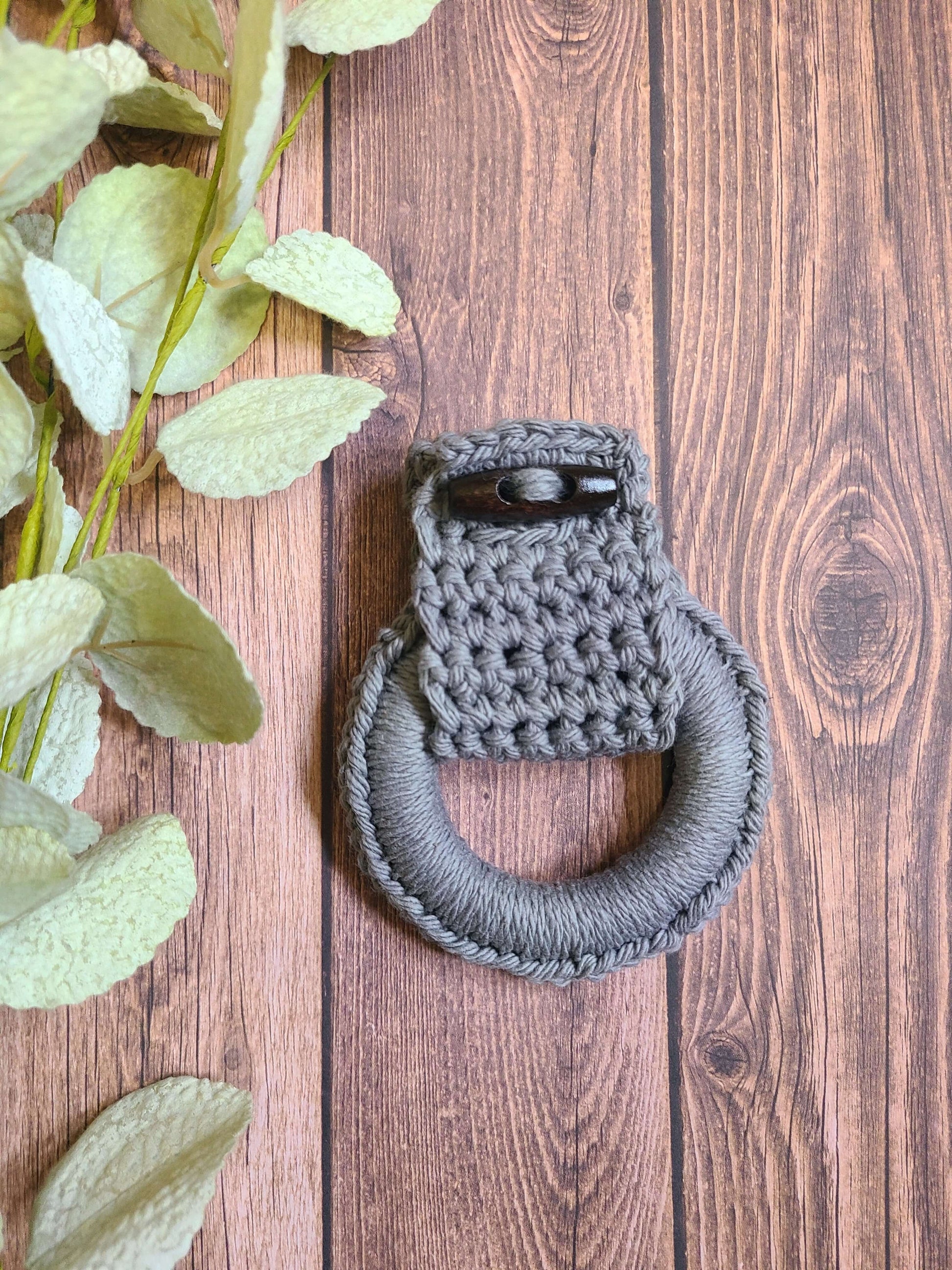 Keep your kitchen towel in place and match your kitchen decor effortlessly! Change up your kitchen towels to match all the seasons and holidays as they come! Simply take the kitchen towel out of the ring and place a new one into the kitchen towel ring holder! It is as easy as that. The Kitchen towel rings rarely need to be washed but they are washer/dryer safe since they are made from 100% cotton threads. Now this item is in the unique accessories collection because of its modern look and functional usage! This makes a lovely house warming gift or Christmas gift for someone close to you.